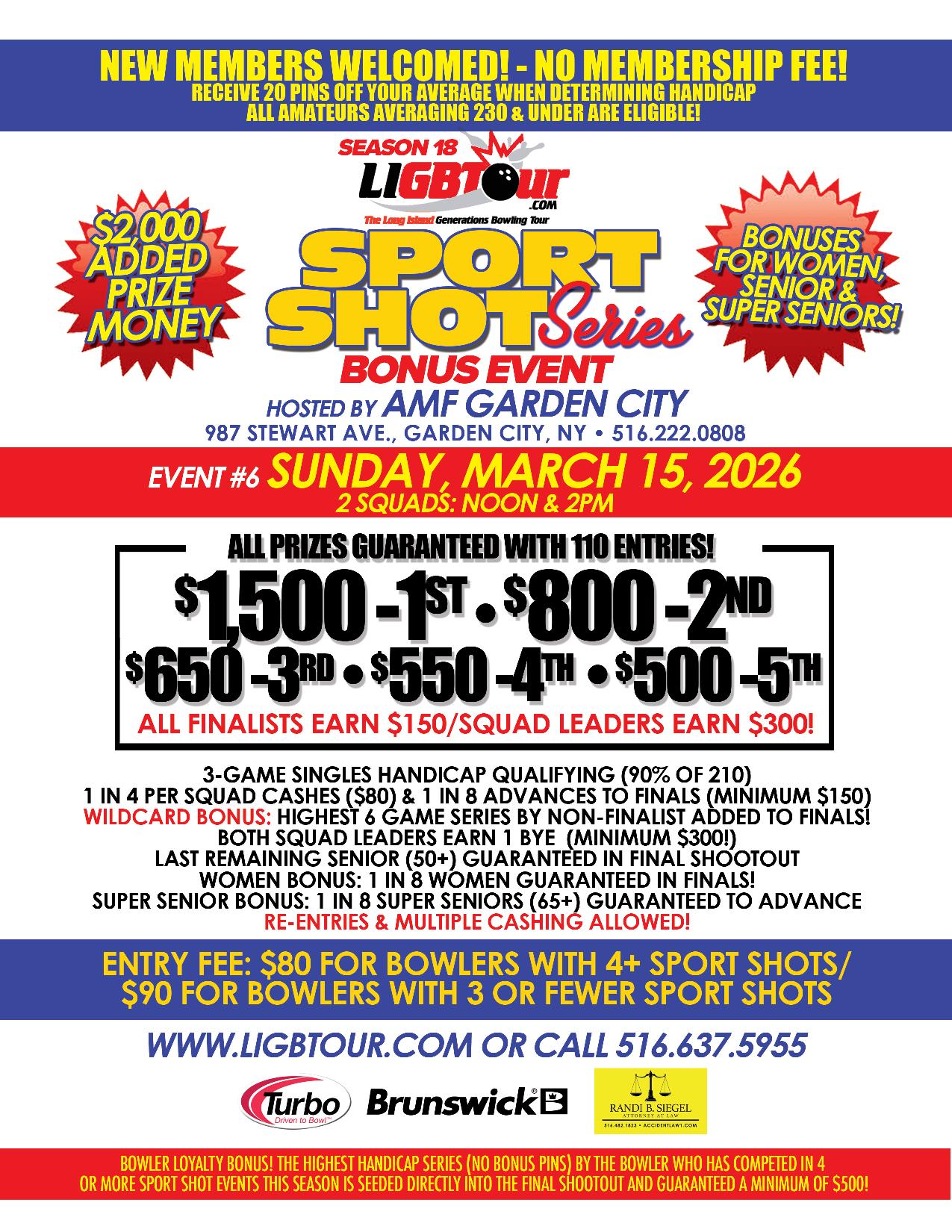 Congratulations to Josh Donnenberg for winning your first LIGBT title on Sunday at Strike 10 Deer Park. Josh earned the $1,500 House Shot Spectacular top prize by defeating Shawn Cummings 254-229 in the final shootout. While Shawn earned $800 for 2nd, finishing in 3rd was Rich Hengel with a 215 worth $600. Rounding out the top 5 was 4 thplace finisher Donald Eubanks with a 213 worth $450 and 5th place finisher Jeremy Milito, representing the scratch division, with a 183 worth $300.