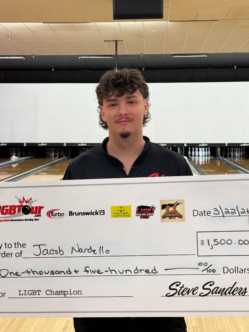 Congratulations to Jacob Nardello for winning the $1,500 top prize at Sunday's LIGBT's Sport Shot Bonus Tournament hosted by AMF Garden City. Jacob won his first LIGBT title by defeating Ted Panagacos 231-213. While Ted earned $1,000 for 2nd place, finishing in 3rd was Vito Genova Sr. with a 211 worth $700. Rounding out the top 5 was 4th place finisher Isaiah Zamor with a 210 earning $550, and 5th went to Dominic Vinas with a 200 taking home $500.