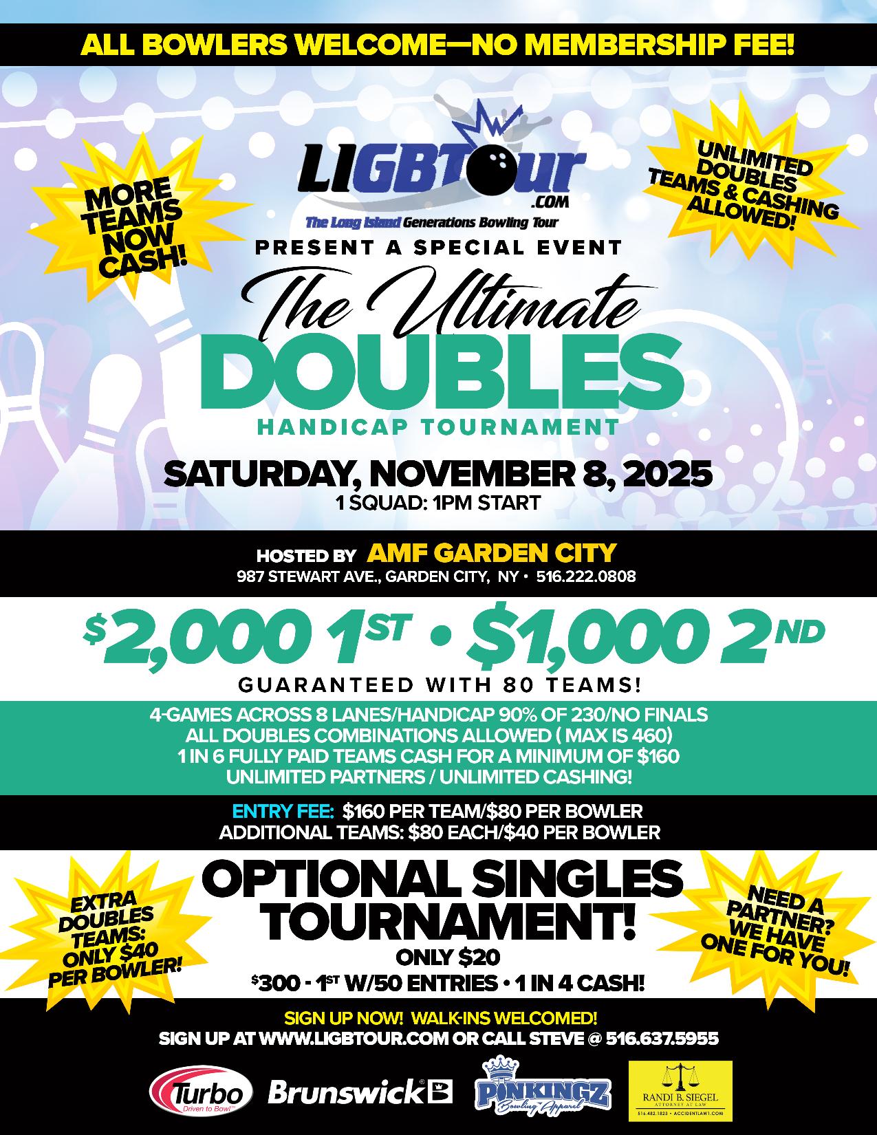 Congratulations to all of the cashers and thanks to everyone that participated on Sunday. Next up for the LIGBT is a Senior Handicap Tournament this Sunday, October 26th at AMF E. Meadow (noon start.) Have a great week and we hope to see you soon at an LIGBT tournament.