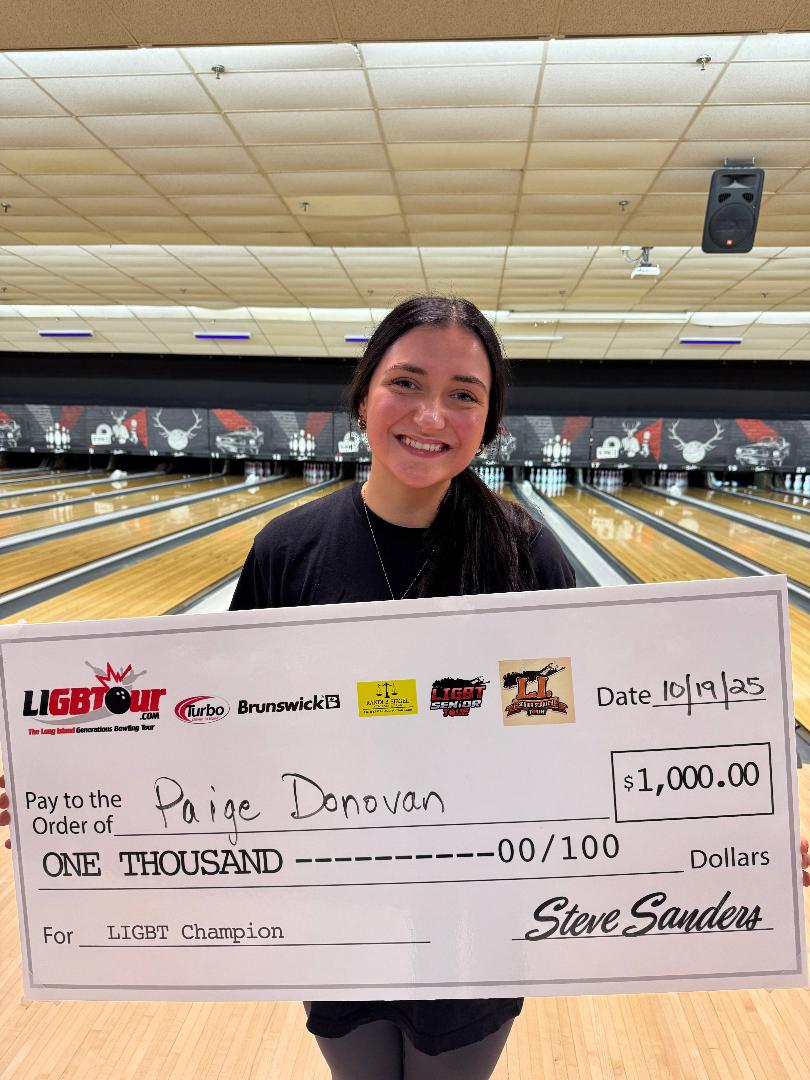 Congratulations to 23 year old Paige Donovan for winning your first LIGBT title at AMF E. Meadow on Sunday. Paige won the $1,000 top prize by defeating Joe Weis 253-241. While Joe earned $500 for 2nd, finishing in 3rd with a 235 was Doug Roszkowski earning $300. Rounding out the top 4 was birthday boy Joe Scianna with a 181 worth $250.