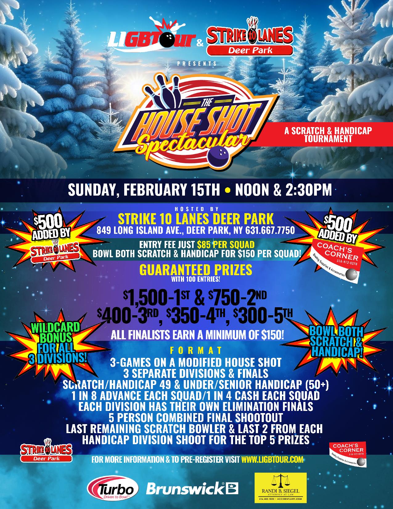 Despite the inclement weather, Sunday's sport shot event attracted a nice field of 75 bowlers and paid out a $3,700 prize fund to 19 cashers. LIGBT's next event is a Handicap Doubles Tournament this Sunday, January 25th at AMF Garden City. Congratulations to all of the cashers and thanks to everyone that competed on Sunday.