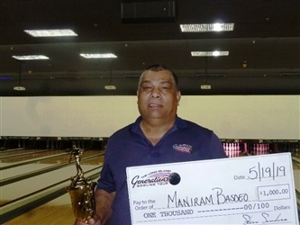 Syosset, NY:  Maniram Basdeo, Bronx, NY, won his 5th LIGBT title after a 2-year drought, by defeating Beverly Parker, Brooklyn, NY 272-221 in the final shootout at AMF Syosset. Manriam earned $1,000 for his victory while Beverly took home $500 for second place. Finishing in third with a 216 was Stella Yoo, New York, NY winning $300. Rounding out the top 4 was Darryl McDuffie, Floral Park, NY with a 204 worth $250.